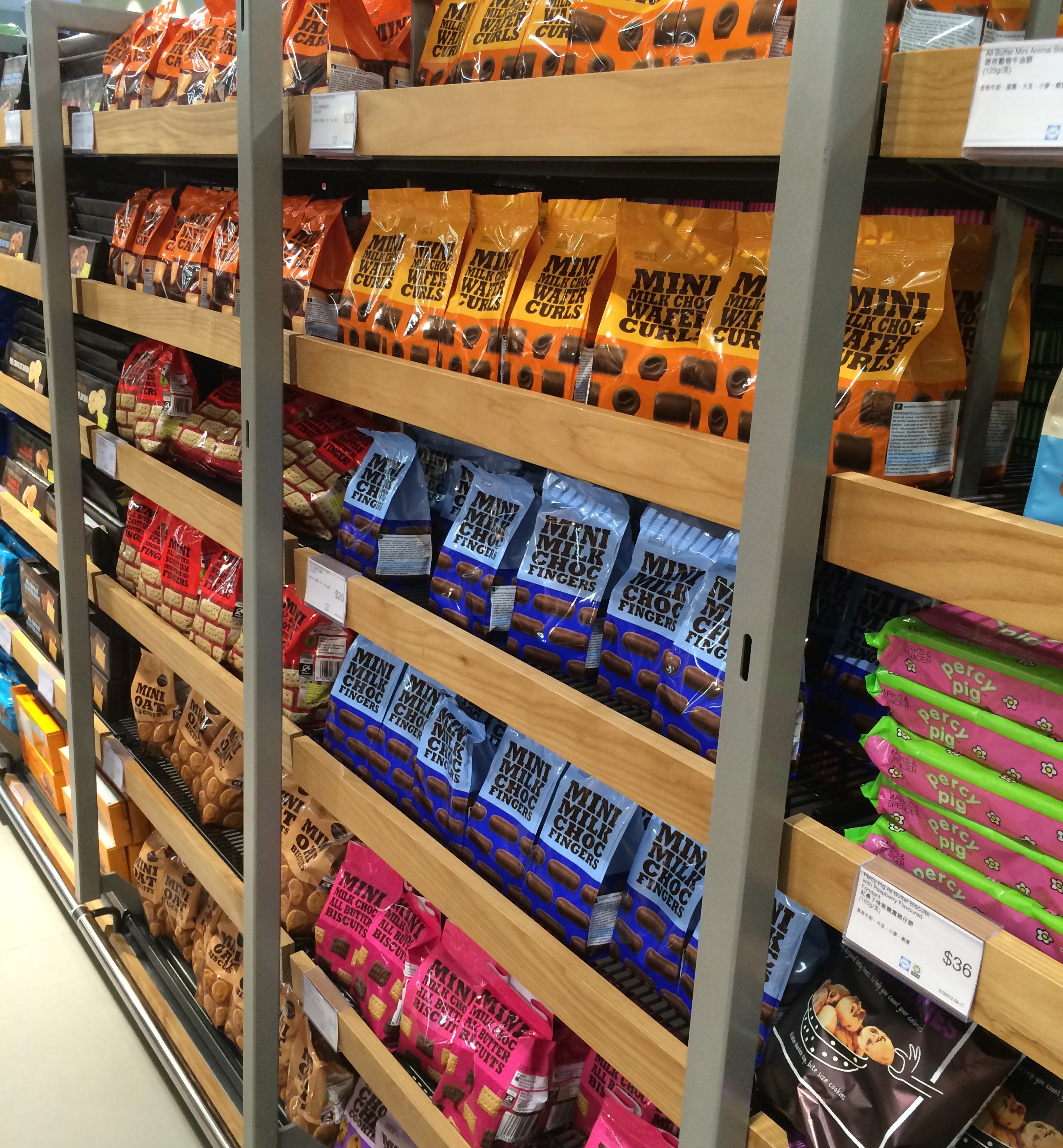 Until today, buying qaulity refrigerated foods like yogurt, cheese, chicken or any kind of meat, required heading downtown to Oliver’s.  With over 4,600 square feet (huge for Hong Kong standards), the Soho location includes fresh coffee, pastries (aka DONUTS!), produce, ready-made hot meals, soups, salads and sandwiches, snack foods, dairy products and wines.  Not to mention beautiful store displays and no durian.