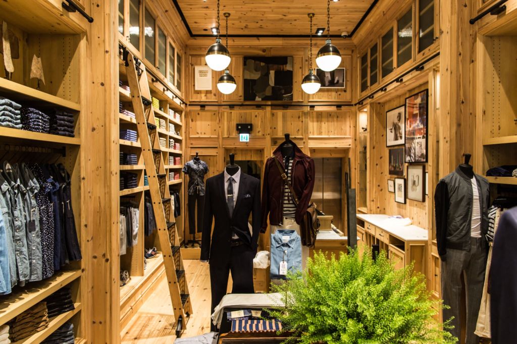 The first two floors mainly house casual wear (including Wallace & Barnes), along with New Balance and Alfred Sargents IN. MY. SIZE.  Third floor offers business and dress suits, including the Ludlow suit and tuxedo line.