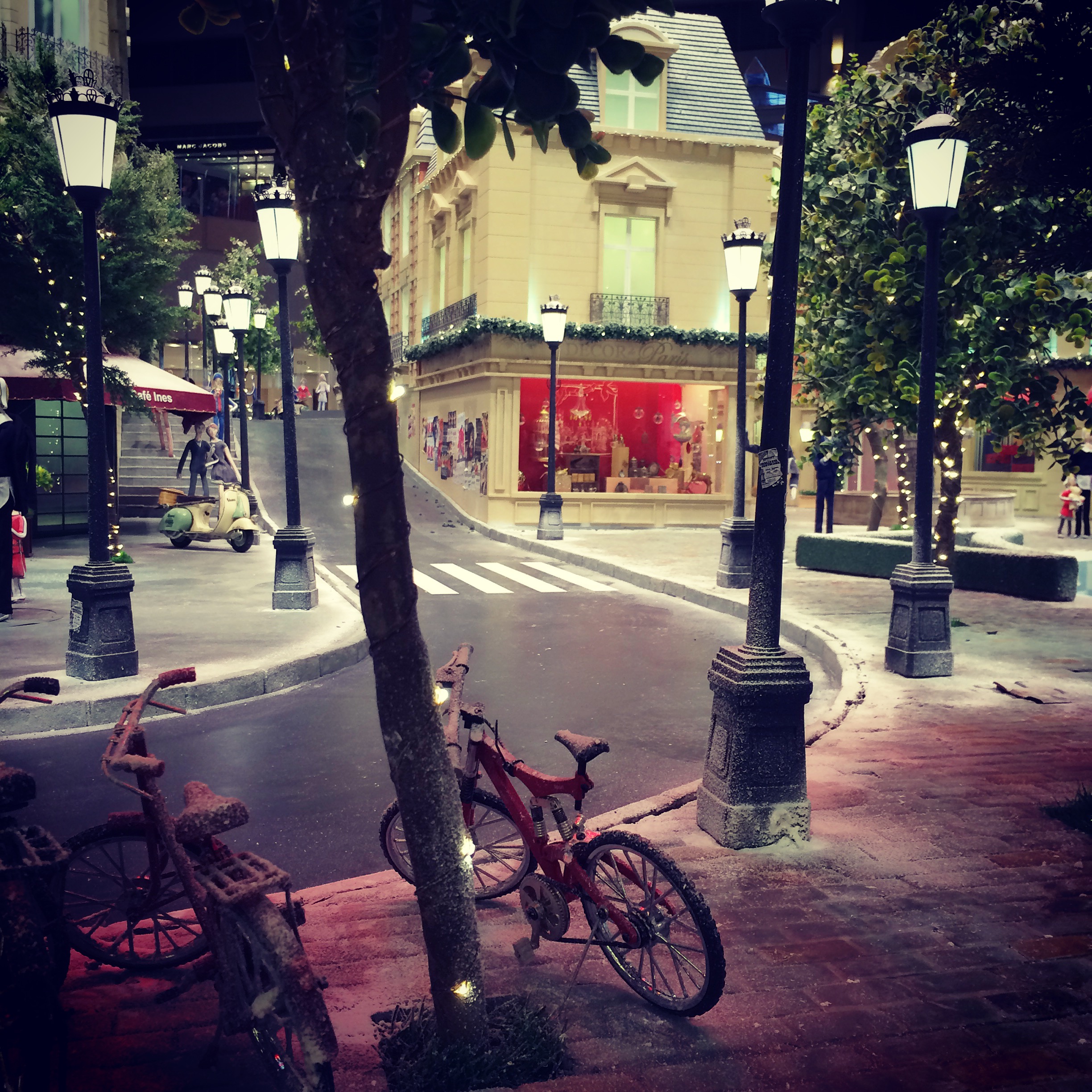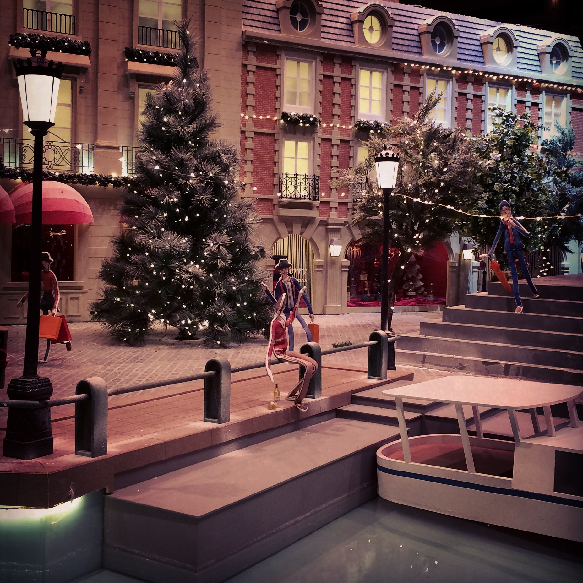 On our way home, we decided to swing by the neighboring Landmark to see this year’s Christmas installation. In case you haven’t heard, Landmark partnered with the uber-chic, French, style icon, Ines de la Fressange to create a one of a kind seasonal display. While reflecting on childhood Christmas memories, Ines has created a truly magnificent series of installations that reflect the tasteful, classic beauty of Paris during the festive season of Christmas.