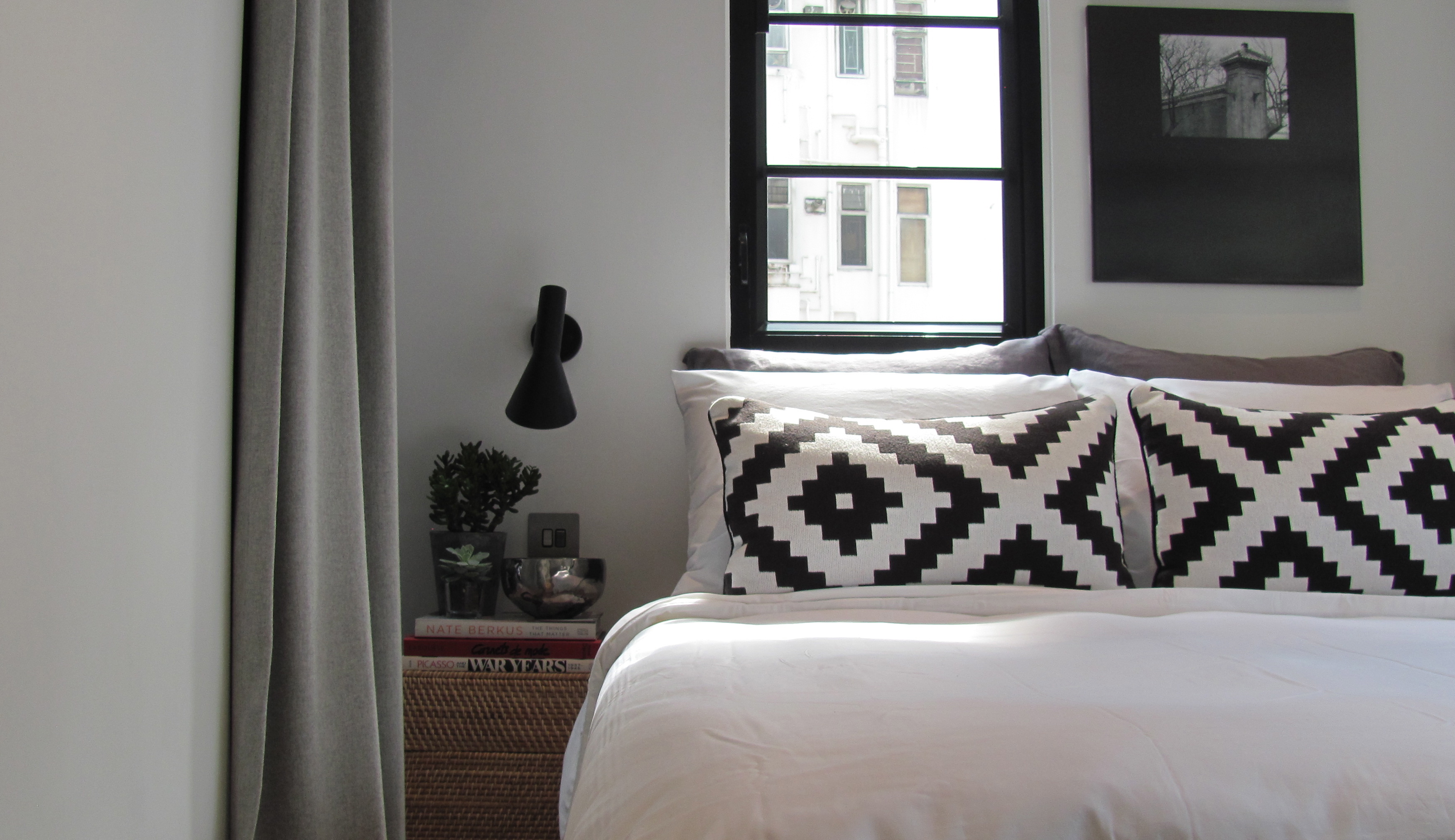- Bedding: Far East Linen Company (local linens from Stanley Market)